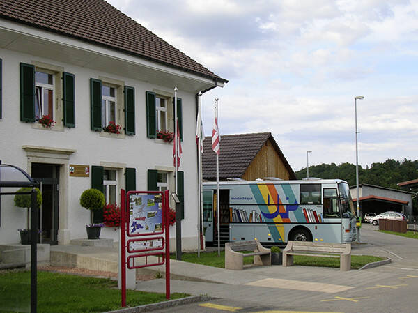 Le Bibliobus de l’Université populaire stationne toutes les deux semaines à Courrendlin, devant l'administration communale, Route de Châtillon 15.