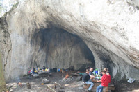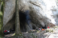 Place de pique-nique non-couverte, située dans une grotte, en direction de Courrendlin-Vicques par le chemin en forêt.
